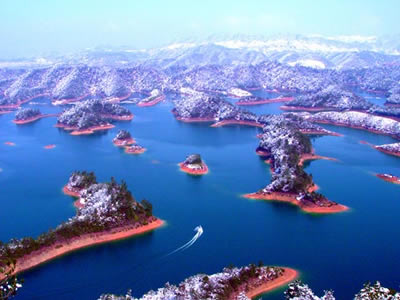 千島湖,是一個(gè)美麗的湖 。湖中那1078個(gè)島嶼,姿態(tài)各異,風(fēng)姿綽約。春游湖上,布滿(mǎn)山花的島嶼,是一個(gè)個(gè)天真爛漫的村姑;夏日游湖,人們多想在這碧波中逐浪暢游;秋山紅葉,使人想起"霜葉紅于二月花"的詩(shī)句,雪滿(mǎn)湖山,松挺山崖,又是一幅王維筆下的詩(shī)畫(huà)圖。